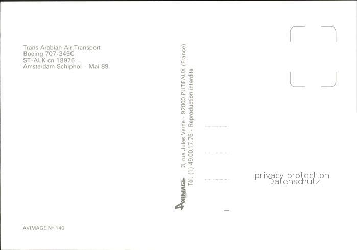 Flugzeuge Zivil Trans Arabian Air Transport Boeing 707-349C ST-ALK cn 18976 postalisch nicht gelaufen Erhaltung siehe scans