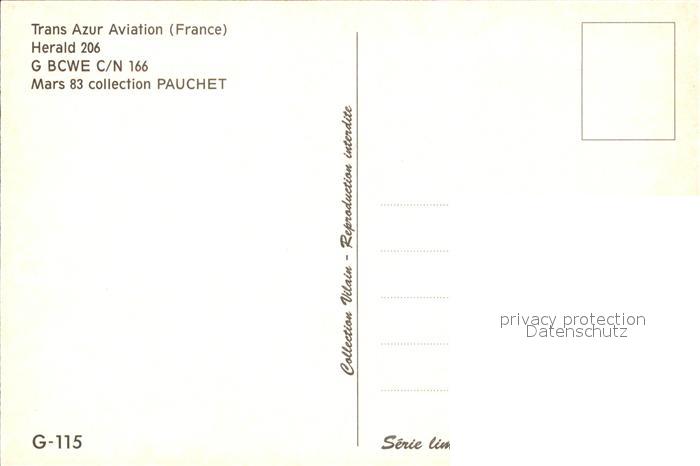 Flugzeuge Zivil Trans Azur Aviation Herald 206 G-BCWE C/N 166 postalisch nicht gelaufen Erhaltung siehe scans