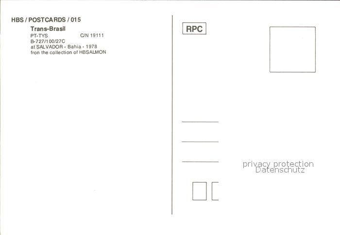 Flugzeuge Zivil Trans-Brasil Boeing 727-100-27C PT-TYS C/N 19111 postalisch nicht gelaufen Erhaltung siehe scans