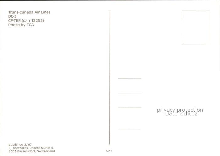 Flugzeuge Zivil Trans-Canada Airlines DC-3 CF-TER c/n 12253 postalisch nicht gelaufen Erhaltung siehe scans