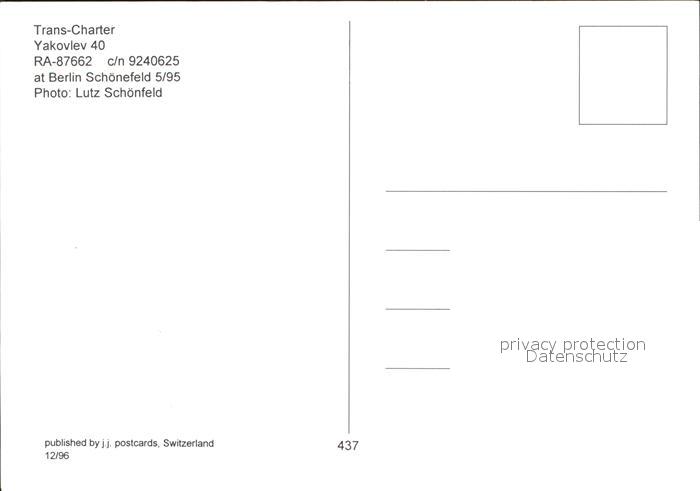 Flugzeuge Zivil Trans-Charter Yakovlev 40 RA-87662 c/n 9240625 postalisch nicht gelaufen Erhaltung siehe scans