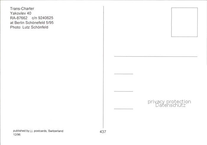 Flugzeuge Zivil Trans-Charter Yakovlev 40 RA-87662 postalisch nicht gelaufen Erhaltung siehe scans