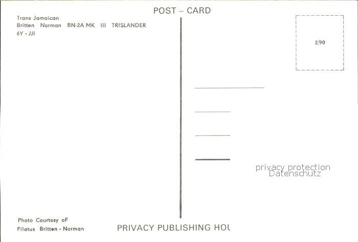 Flugzeuge Zivil Trans Jamaican Britten Norman BN-2A MK III Trislaander 6Y-JJI postalisch nicht gelaufen Erhaltung siehe scans
