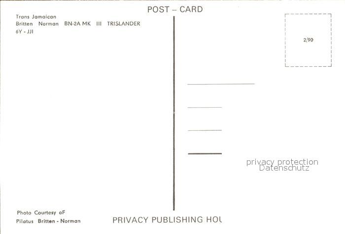 Flugzeuge Zivil Trans Jamaican Britten Norman BN-2A MK III Trislander 6Y-JJI postalisch nicht gelaufen Erhaltung siehe scans