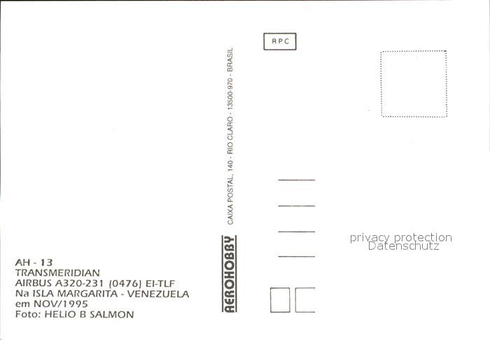 Flugzeuge Zivil Trans Meridian A320-231 0476 EI-TLF postalisch nicht gelaufen Erhaltung siehe scans