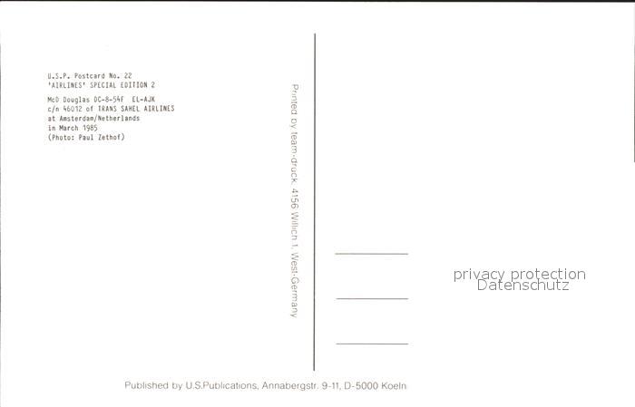 Flugzeuge Zivil Trans Sahel Airlines McD Douglas DC-8-54f EL-AJK c/n 46012 postalisch nicht gelaufen