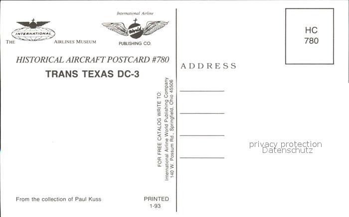 Flugzeuge Zivil Trans Texas DC-3 postalisch nicht gelaufen Erhaltung siehe scans