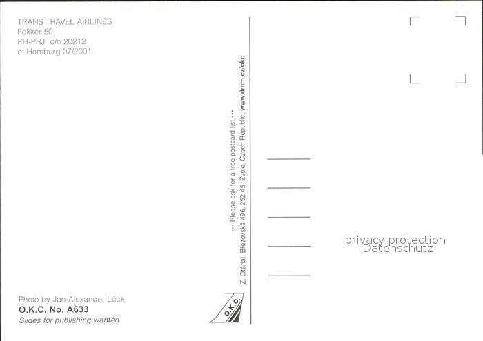 Flugzeuge Zivil Trans Travel Airlines Fokker 50 PH-PRJ c/n 20212 postalisch nicht gelaufen Erhaltung siehe scans