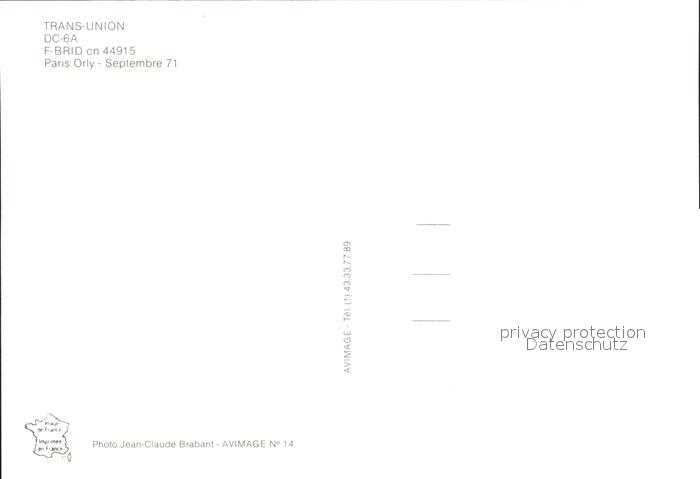 Flugzeuge Zivil Trans-Union DC-6A F-BRID cn 44915 postalisch nicht gelaufen Erhaltung siehe scans
