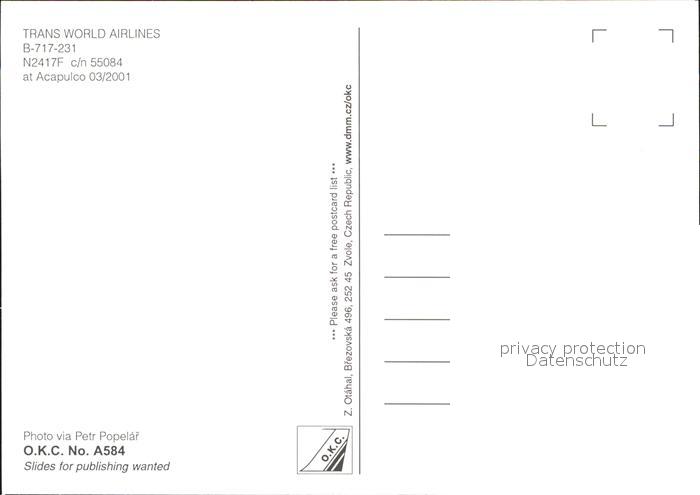 71813220 Flugzeuge Zivil Trans World Airlines B-717-231 N2417F c/n 55084 KatCode 22120000001300