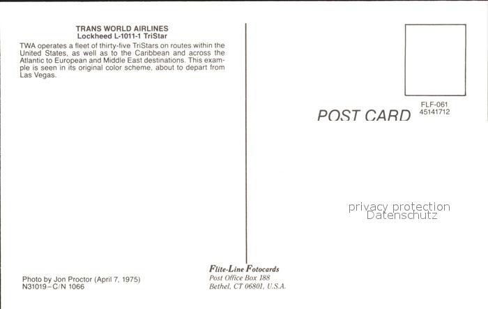 Flugzeuge Zivil Trans World Airlines Lockheed L-1011-1 TriStar N31019 c/n 1066 postalisch nicht gelaufen Erhaltung siehe scans