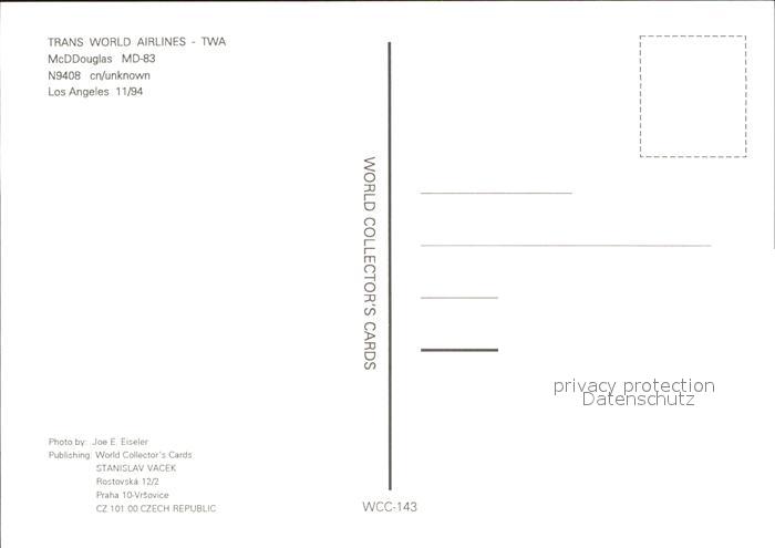 Flugzeuge Zivil Trans World Airlines TWA McDDouglas MD-83 N9408 cn/unknown postalisch nicht gelaufen Erhaltung siehe scans