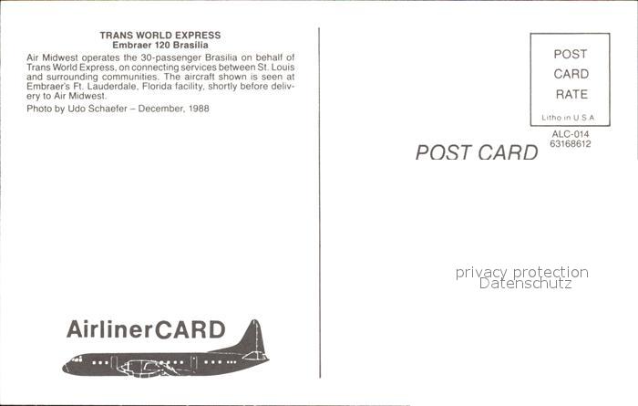 Flugzeuge Zivil Trans World Express Embraer 120 Brasilia postalisch nicht gelaufen Erhaltung siehe scans