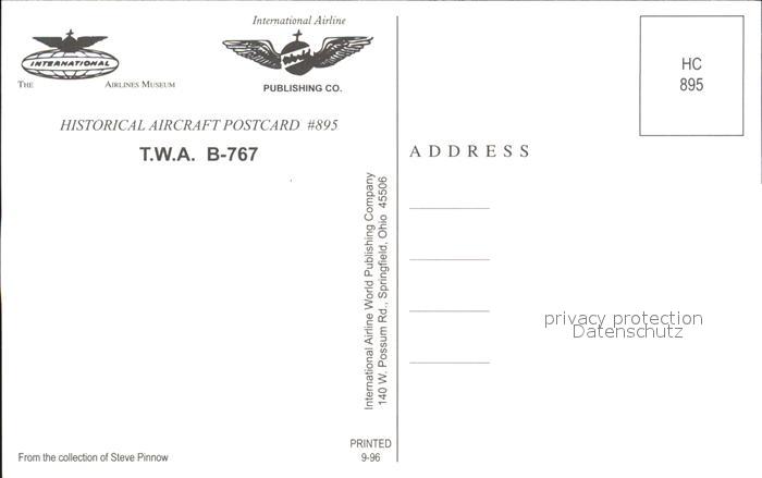 Flugzeuge Zivil Trans World TWA B-767 postalisch nicht gelaufen Erhaltung siehe scans
