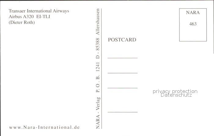 Flugzeuge Zivil Transaer International Airways Airbus A320 EI-TLI postalisch nicht gelaufen Erhaltung siehe scans