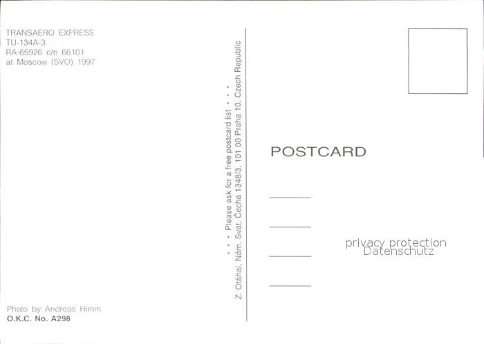 Flugzeuge Zivil Transaero Express TU-134A-3 RA-65926 c/n 66101 postalisch nicht gelaufen Erhaltung siehe scans