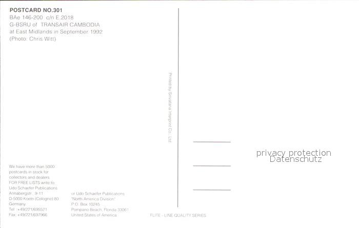 Flugzeuge Zivil Transair Cambodia BAe 146-200 c/n E2018 G-BSRU postalisch nicht gelaufen Erhaltung siehe scans