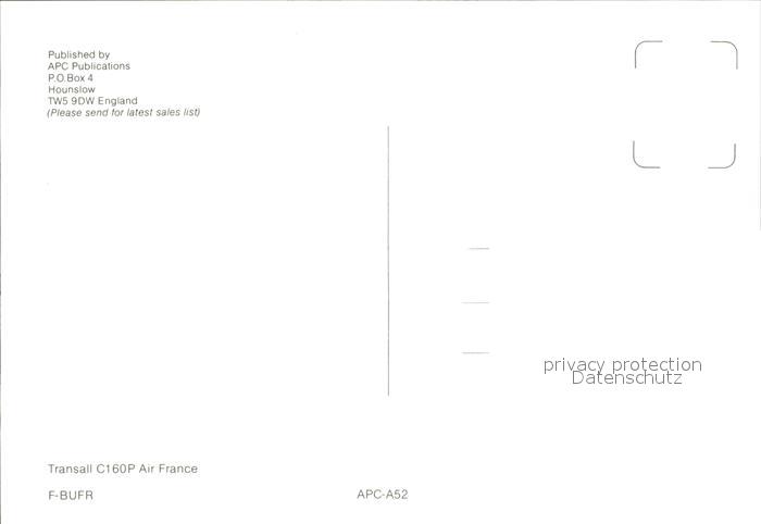 Flugzeuge Zivil Transall C160P Air France F-BUFR postalisch nicht gelaufen Erhaltung siehe scans