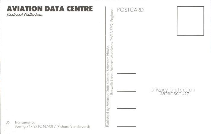 Flugzeuge Zivil Transamerica Boeing 747-271C N743TV postalisch nicht gelaufen Erhaltung siehe scans