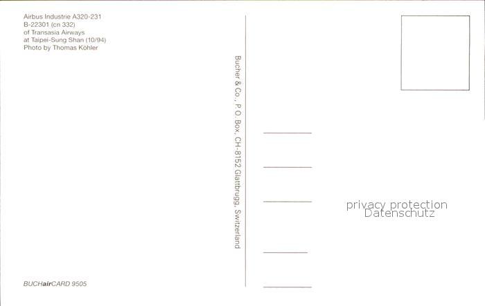Flugzeuge Zivil Transasia Airwys A320-231 B-22301 cn 332 postalisch nicht gelaufen Erhaltung siehe scans