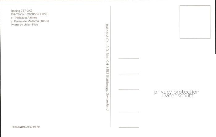 Flugzeuge Zivil Transavia Airlines Boeing 737-3K2 PH-TSY cn 28085/fn 2722 postalisch nicht gelaufen Erhaltung siehe scans