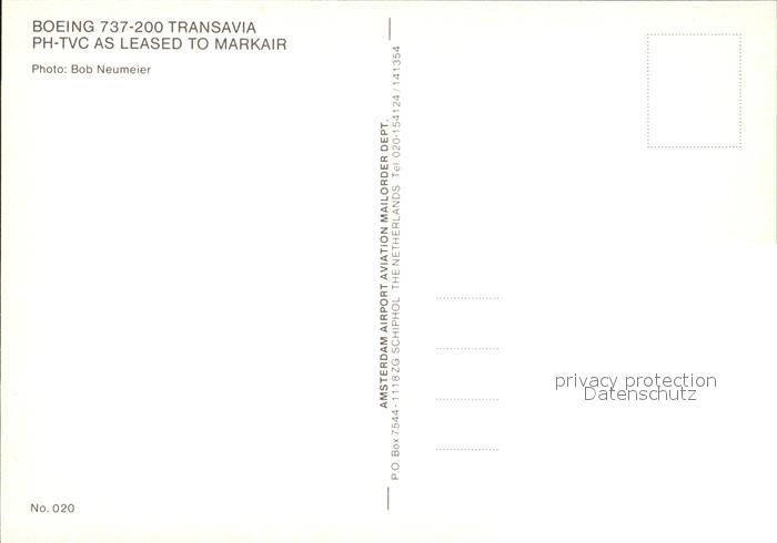 Flugzeuge Zivil Transavia Holland Boeing 737-200 PH-TVC postalisch nicht gelaufen Erhaltung siehe scans