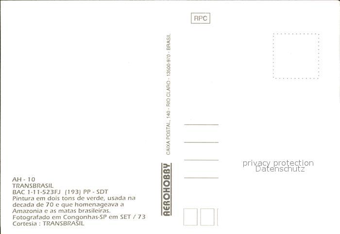 Flugzeuge Zivil Transbrasil BAC 1-11-523FJ PP-SDT postalisch nicht gelaufen Erhaltung siehe scans