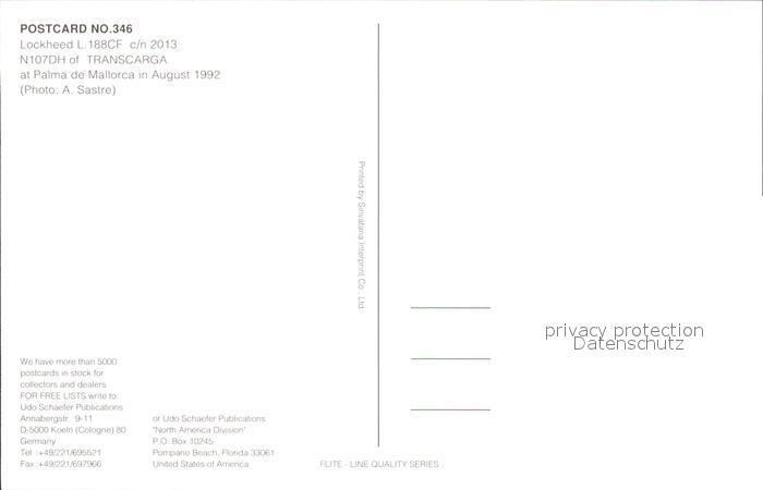 Flugzeuge Zivil Transcarga Lockheed L.188CF c/n 2013 N107DH postalisch nicht gelaufen Erhaltung siehe scans
