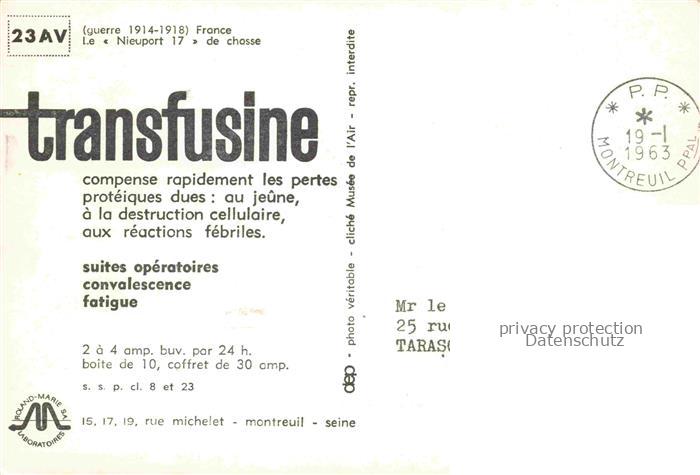 74012280 alte Postkarte Flugzeuge Zivil Transfusine France Nieuport 17 postalisch gelaufen Erhaltung siehe scans [IrynaD87] KatCode: 22120000001300