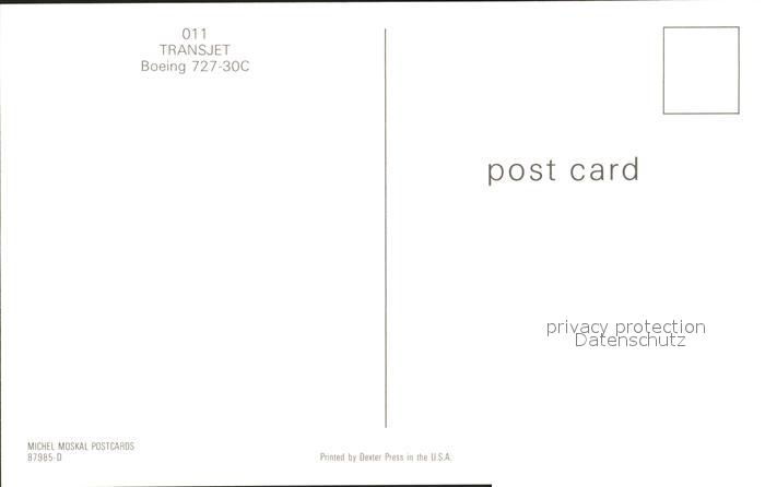 Flugzeuge Zivil Transjet Boeing 727-30C postalisch nicht gelaufen Erhaltung siehe scans