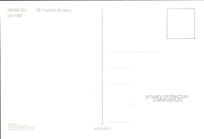 Flugzeuge Zivil Transkei Airways HS 748-351 c/n 1587 postalisch nicht gelaufen Erhaltung siehe scans