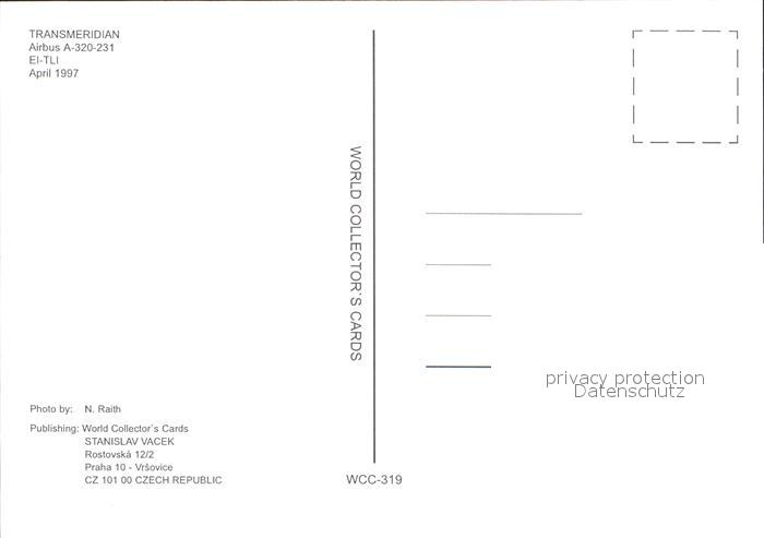 Flugzeuge Zivil Transmeridian Airbus A-320-231 EI-TLI postalisch nicht gelaufen Erhaltung siehe scans