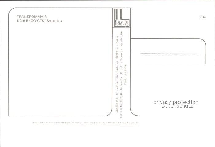 Flugzeuge Zivil Transpommair DC-6 B OO-CTK postalisch nicht gelaufen Erhaltung siehe scans