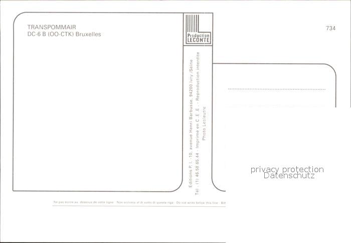 Flugzeuge Zivil Transpommair DC-6 B OO-CTK postalisch nicht gelaufen Erhaltung siehe scans