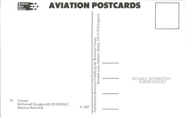 Flugzeuge Zivil Transtar McDonnell Douglas MD-82 N932MC postalisch nicht gelaufen Erhaltung siehe scans
