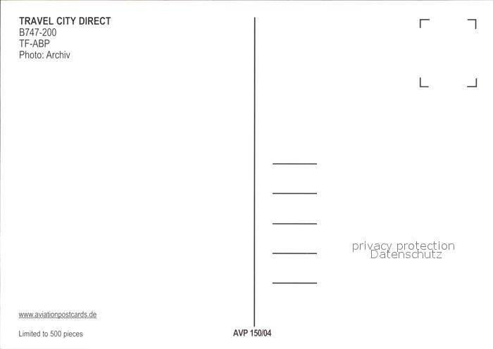 Flugzeuge Zivil Travel City Direct B747-200 TF-ABP postalisch nicht gelaufen Erhaltung siehe scans