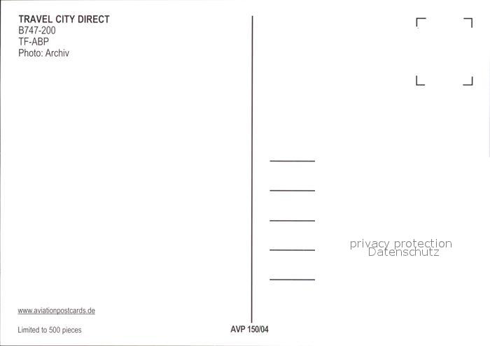 Flugzeuge Zivil Travel City Direct B747-200 TF-ABP postalisch nicht gelaufen Erhaltung siehe scans