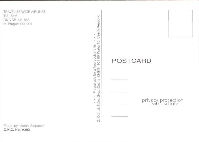 Flugzeuge Zivil Travel Service Airlines TU-154M OK-VCP c/n 858 postalisch nicht gelaufen Erhaltung siehe scans