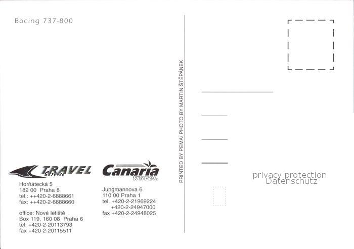 Flugzeuge Zivil Travel Service Boeing 737-800 postalisch nicht gelaufen Erhaltung siehe scans