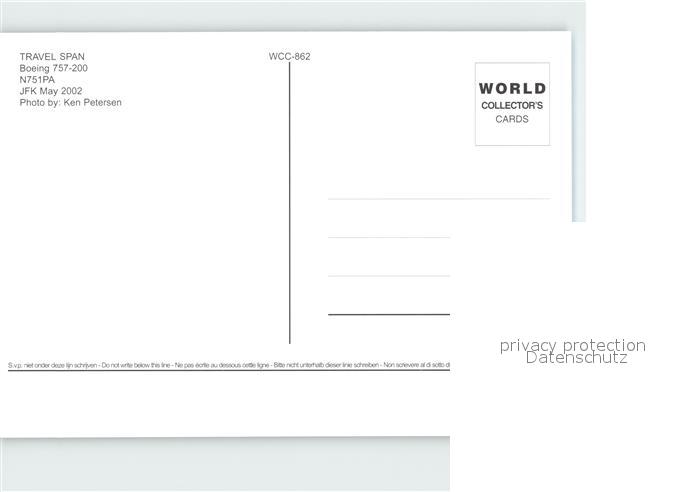 Flugzeuge Zivil Travel Spain Boeing 757-200 N751PA postalisch nicht gelaufen Erhaltung siehe scans