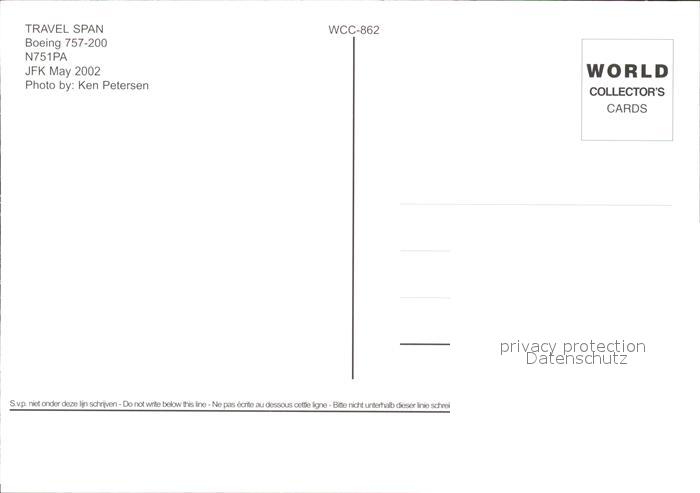 Flugzeuge Zivil Travel Span Boeing 757-200 N751PA postalisch nicht gelaufen Erhaltung siehe scans