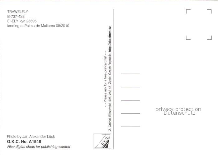 Flugzeuge Zivil Trawalfly B-737-4S3 EI-ELY c/n 25595 postalisch nicht gelaufen Erhaltung siehe scans