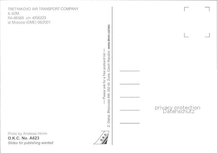 Flugzeuge Zivil Tretyakovo Air Transport Company IL-62M RA-86568 c/n 4256223 postalisch nicht gelaufen Erhaltung siehe scans