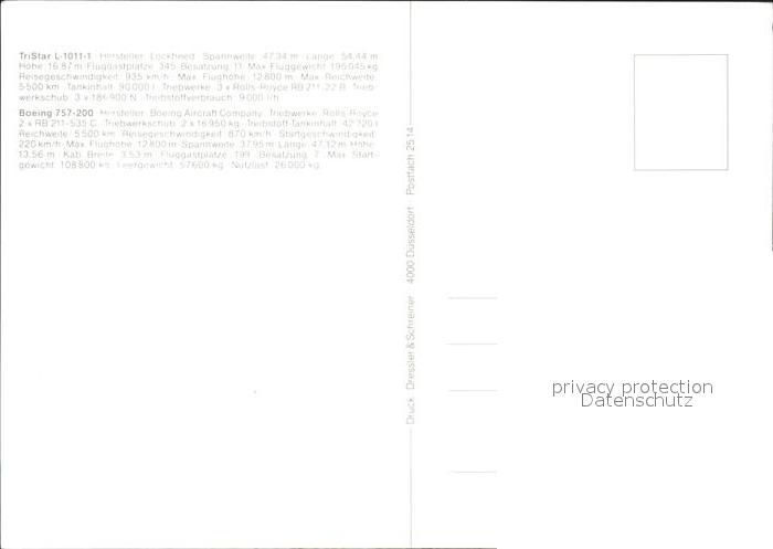 Flugzeuge Zivil TriStar L-1011-1 Boeing 757-200 Cockpit LTU LTS postalisch nicht gelaufen