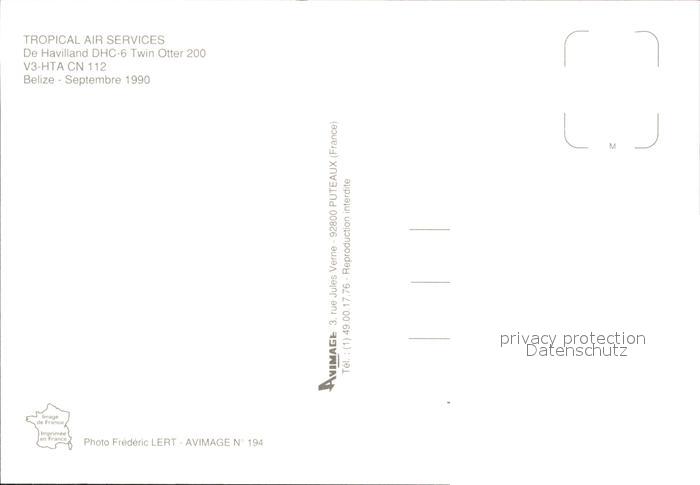 Flugzeuge Zivil Tropical Air Services De Havilland DHC-6 Twin Otter 200 V3-HTA cn 112 postalisch nicht gelaufen Erhaltung siehe scans