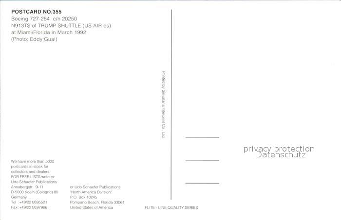 Flugzeuge Zivil Trump Shuttle Boeing 727-254 c/n 20250 N913TS postalisch nicht gelaufen Erhaltung siehe scans