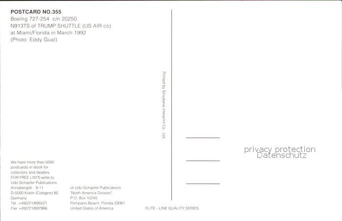 Flugzeuge Zivil Trump Shuttle US Air Boeing 727-254 c/n 20250 N913TS postalisch nicht gelaufen Erhaltung siehe scans