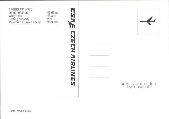 Flugzeuge Zivil TSA Airbus A310-300 postalisch nicht gelaufen Erhaltung siehe scans