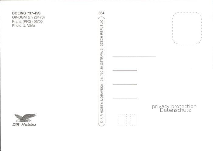 Flugzeuge Zivil TSA Boeing 737-45S OK-DGM cn 28473 postalisch nicht gelaufen Erhaltung siehe scans