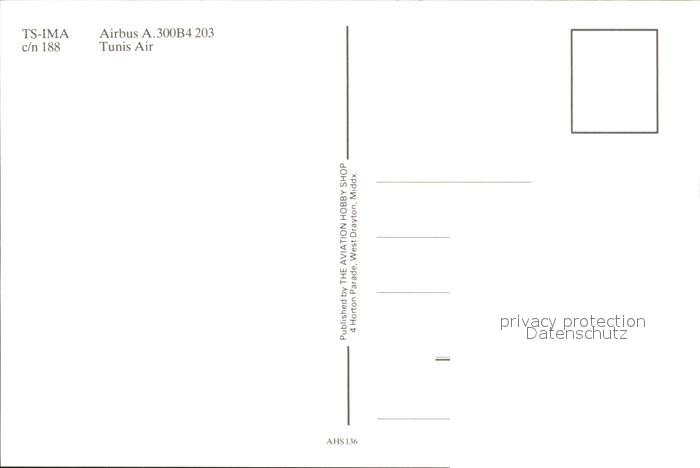 Flugzeuge Zivil Tunis Air A.300B4 203 TS-IMA c/n 188 postalisch nicht gelaufen Erhaltung siehe scans